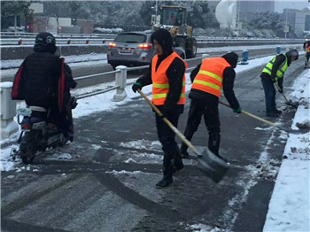 2018年1 月25日,江陰遭遇了2008年以來(lái)最強(qiáng)降雪,為應(yīng)對(duì)暴雪,公司出動(dòng)人員314人次,撒鹽車29車次,鏟雪車6車次,鏟車21車次,連續(xù)四天從凌晨三四點(diǎn)鐘起進(jìn)行除冰掃雪作業(yè),保障江陰市民雪后出行安全。